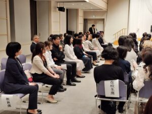 新入生数は144名で、うち日本語科が119名、日本語通訳ビジネス科が22名でした。また、短期留学生としてイタリア、台湾、スウェーデンから3名の学生も出席しました。これにより、4月からは新入生と在校生を合わせて、39の国や地域の学生が同じ学舎で学ぶこととなります。
